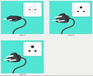 For India, there are three associated plug types, types C, D and M. Plug type C is the plug that has two round pins, plug type D is the plug that has three round pins in a triangular pattern and plug type M is the plug which also has three round pins. India operates on a 230V supply voltage and 50Hz.